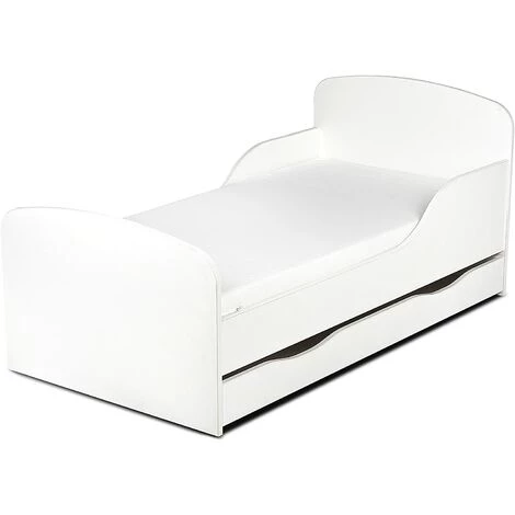 LEOMARK Moderne Lit D’Enfant Toddler En Bois Avec Un Matelas Et Un Tiroir Blanche