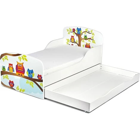 LEOMARK Moderne Lit D’Enfant Toddler En Bois Avec Un Matelas Et Un Tiroir Hiboux