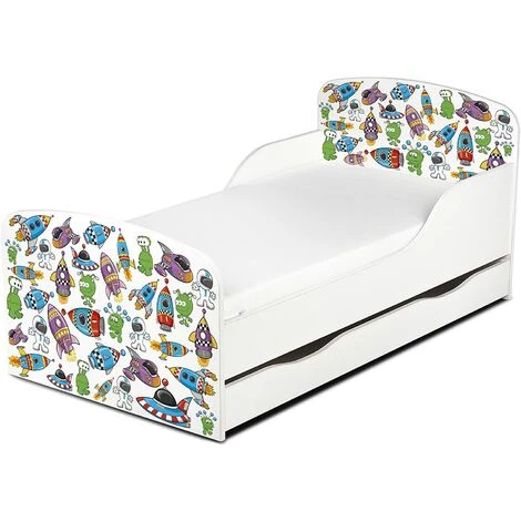LEOMARK Moderne Lit D’Enfant Toddler En Bois Avec Un Matelas Et Un Tiroir UFO