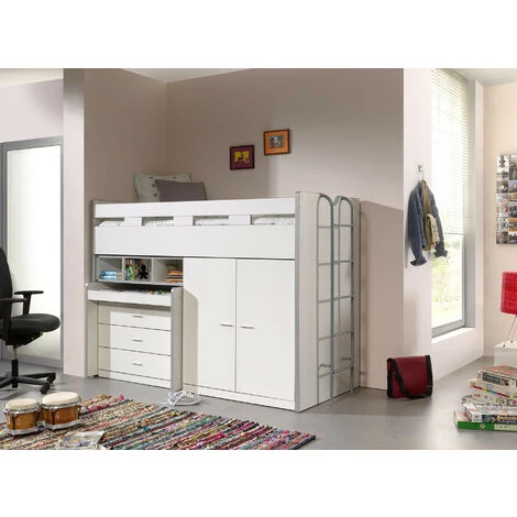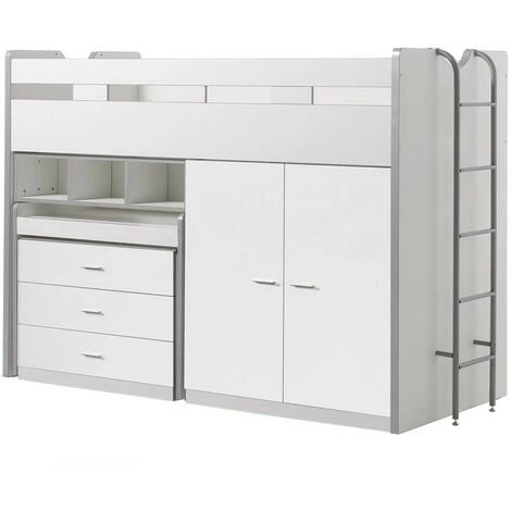 Ce superbe lit 90×200 cm combiné blanc apportera une touche de déco unique et exceptionnelle à la chambre de votre bout de chou. Il est fabriqué en bois MDF d’excellente qualité, ce qui assure un confort inouï et une bonne résistance. Il dispose d’un couchage supérieur de 90×200 cm, d’un bureau coulissant avec 3 niches, d’une armoire à 2 portes et d’une commode à 3 tiroirs.Ce lit existe en différents coloris.D’autres meubles peuvent le compléter pour harmoniser votre déco.Matière : Bois MDFCouleur : BlancDimensions : L 227 x H 151 x P 95 cmPoids: 189 kgNombre de colis : 8Garantie : 2 ansFabrication : BelgiqueNous ne livrons pas en Corse.