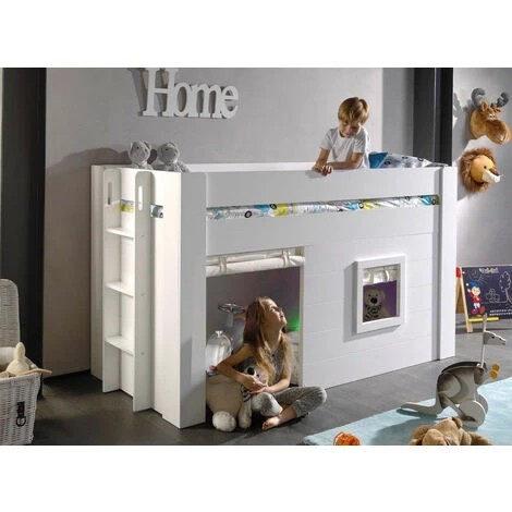 Ce magnifique lit mezzanine avec un couchage de 90 x 200 cm de la collection Noah fera rêver votre enfant. Il est fabriqué en bois massif et en panneaux de particules laqué blanc pour plus de résistance. Votre enfant dormira en toute sécurité grâce à la barrière de sécurité et pourra avoir un bel espace pour jouer. Pour plus de décor, il peut être associé avec des rideaux spécialement conçus pour ce modèle de lit. Matière : Bois MDF laquéCouleur : BlancCouchage : 90 x 200 cmDimensions lit : L 214 x H 120 cm x P 96 cmPoids: 80 kgNombre de colis : 3Colis 1/3 : 129 x 24,5 x 20 cm – 21 kgColis 2/3 : 212 x 23,5 x 22 cm – 40 kgColis 3/3 : 125 x 89,5 x 8,5 cm – 19 kgGarantie : 2 ansFabrication : BelgiqueNous ne livrons pas en Corse.