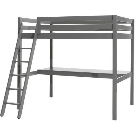 la chambre de votre enfant sera décorée de façon élégante et charmante avec ce lit mezzanine 140x200cm. Sa conception en pin massif garantit une bonne stabilité et un meuble durable.Ce lit existe aussi en couchage de 90×200 cm et en d’autres coloris.Matière : Bois pin massifCouleur : GrisCouchage: 140 x 200 cmDimensions : L 209 x H 190 x P 215 cmPoids : 84 kgNombre de colis : 4Sommier: InclusGarantie : 2 ansFabrication : BelgiqueNous ne livrons pas en Corse.