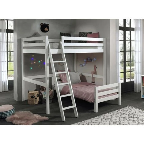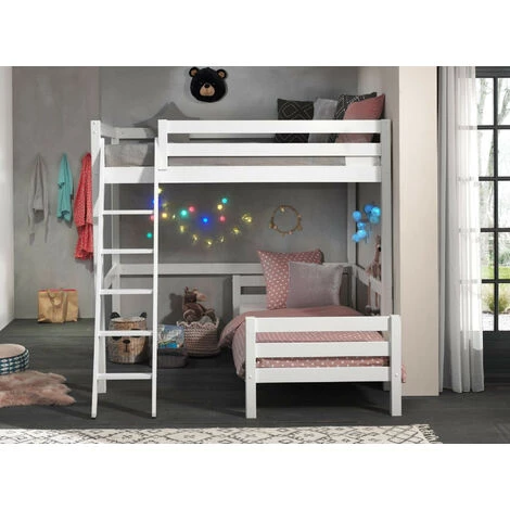 Ce lit mezzanine 140×200 cm et ce lit simple 90×200 cm embelliront à merveille la chambre de vos enfants. Leur structure apportera une excellente solidité et longévité.D’autres meubles peuvent le compléter pour créer la chambre de votre enfant.Matière : Pin massifCouleur : BlancCouchage : 90×200 cm / 140×200 cmDimensions lit mezzanine : L 209 x H 190 x P 215 cm Dimensions lit simple : L 209 x H 63 x P 99 cmPoids: 87 kgSommier : inclusNombre de colis : 5Garantie : 2 ansFabrication : BelgiqueNous ne livrons pas en Corse.