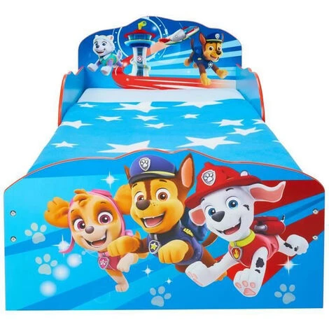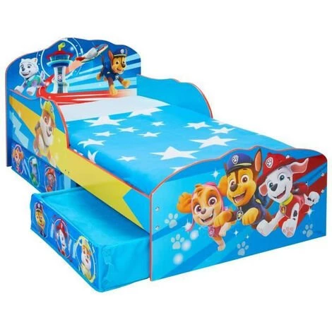 PAT PATROUILLE Lit avec espace de rangement sous le lit – Douillet, sans danger et simple a installer – Dimensions idéales pour les tout-petits : pres du sol, avec des panneaux latéraux de protection – Deux tiroirs en tissu – Convient aux matelas de 140×70 cm – Matelas non fourni – Garçon – a partir de 18 mois – Livré a l’unité.Nous ne livrons pas en Corse.