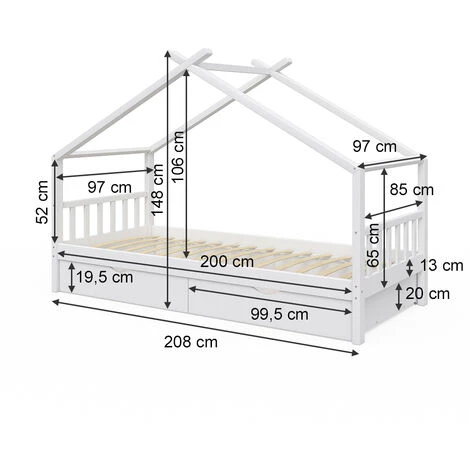- Ce lit pour enfant mesure 208 x 146 x 97 cm (l x h x p).