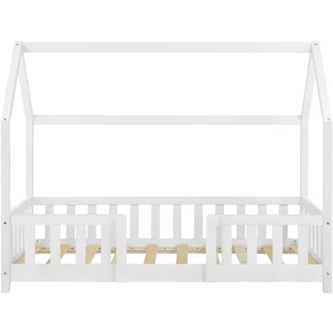 Ce lit d’enfant solide en pin sera le favori des plus petits. Grâce à son design maison, il peut être l’ornement de la chambre d’enfant. La sécurité est garanti par la grille qui encadre le lit.
