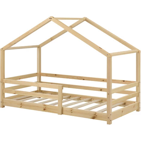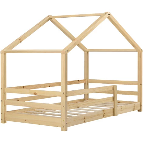 Ce lit solide en pin est conçu aux enfants. Grâce au design maison, il peut être l’ornement de n’importe quelle chambre d’enfant. Pour assurer la sécurité de votre enfant, le matelas est encadré par des barreaux de protection.