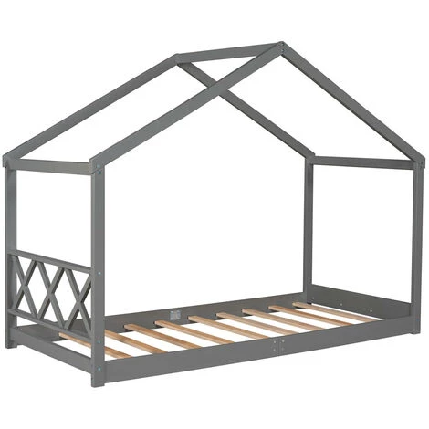 Ce lit de maison super cool est parfait pour les enfants. Vous pouvez créer une retraite fraîche dans la chambre et laisser libre cours à l’imagination de votre enfant. Grâce à son cadre polyvalent et simple, vous pouvez le décorer selon la personnalité de votre enfant, par ex. B. avec des tissus drapés, des lanternes suspendues ou des jouets. Ce lit en bois est également parfait pour le coin lecture ou la salle de jeux de votre enfant. Fabriqué en bois de pin massif, ce cadre de lit est très solide et durable. Remarque : la livraison comprend uniquement le cadre de lit et les sommiers à lattes avec une capacité de charge de 160 kg.