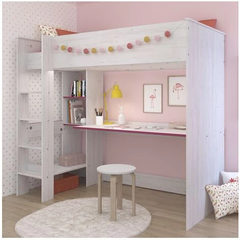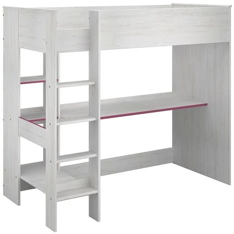 Ce meuble multifonction proposent à la fois un couchage confortable pour un jeune accessible via une échelle à 4 marches. Pour un gain d’espace au sol, vous trouverez sous le lit un espace bureau et un espace rangement composé d’étagères permettant à votre enfant de disposer ses livres comme une bibliothèque ou entreposer ses jouets.