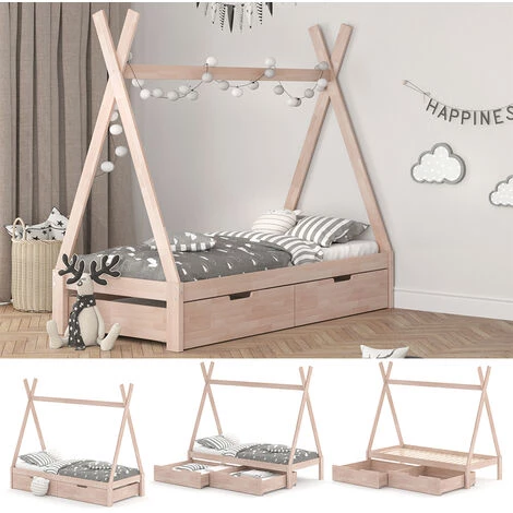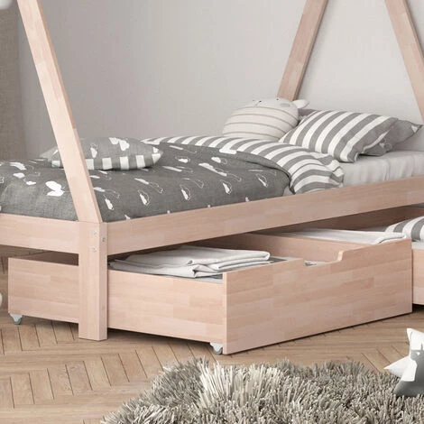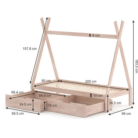 Vous trouverez également les tiroirs assortis par lot de deux ou un coffre à literie avec sommier à lattes au sein de notre boutique. Faites-vous plaisir, à vous et votre famille, en optant pour notre lit pour enfant Tipi.