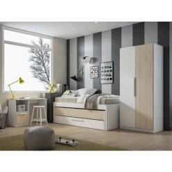 Lit Enfant BOBOCHIC – Lit Gigogne Avec 2 Tiroirs CANDIE Chêne Et Blanc 90 X 190 Cm – Chêne Et Blanc