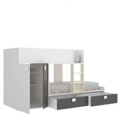 BEFARA LIT DE TRAIN AVEC TIROIRS ET ARMOIRE TIVOLI – Finlandais / Graphite – Finlandais / Graphite