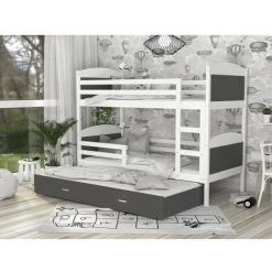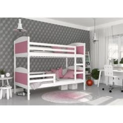 KIDS LITERIE Lit Superposé Mati 90×190 Blanc – Rose Livré Avec Sommiers – Blanc – Rose
