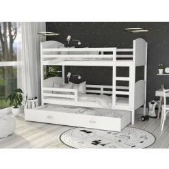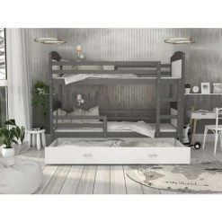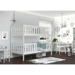 KIDS LITERIE Lit Superposé Leo 90×190 Blanc – Blanc Livré Avec Sommiers – Blanc – Blanc
