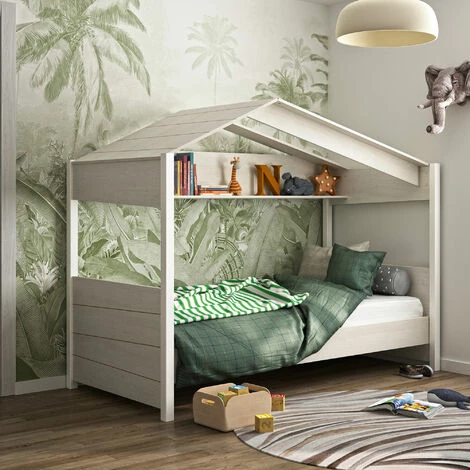 Vous allez adorer ce lit cabane qui s’offre à vous. Il est fait en panneaux de particules et est d’une solidité et d’un confort étonnants. Avec du rainurage sur certaines pièces, ce lit est joli à voir et garantit aisance et douceur à celui qui aura l’opportunité de s’y allonger. Équipez la salle de votre enfant de ce lit. Il conviendra à vos enfants. Leur chambre bien décorée se trouvera en parfaite harmonie avec ce lit couleur chêne blanchi et blanc. Offrez-le à votre enfant et donnez-lui la possibilité de dormir dans un bel espace.
