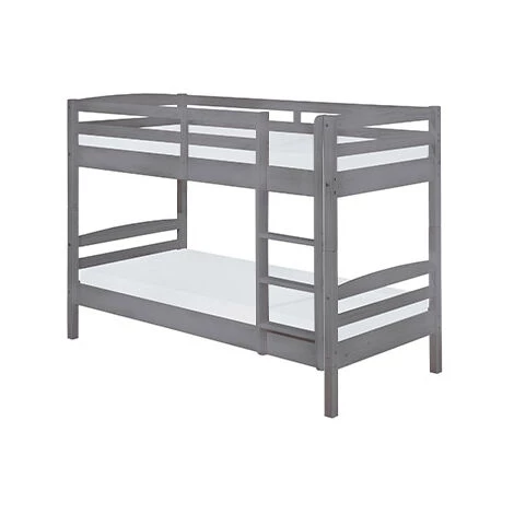 Ces lits superposés en pin massif gris est la solution pour accueillir plus de personnes dans une chambre d’enfants. Destiné aux enfants de plus de six ans, le couchage supérieur est bordé par un rempart surélevé pour éviter les chutes pendant le sommeil. Une échelle intégrée permet d’accéder au lit d’en dessus, dont les traverses sont espacées de manière à s’adapter à la taille des enfants. Ces caractéristiques sont conformes aux exigences de sécurité pour ce type de literie. Ces lits superposés à une place présentent un design simple et minimaliste, qui se résume à une tête et un pied de lit en lamelles transversales.
