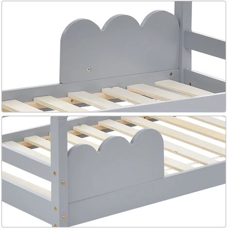 - ? NOTRE PROMESSE – Le lit d’aventure sera un point culminant dans la chambre des enfants. Votre fille/gar?on rayonnera de joie. Vous pouvez également installer des tentes, vos enfants peuvent jouer à cache-cache avec leurs amis ou leurs frères et s?urs et s’offrir un sommeil sain et sauf. Le bois de pin est solide et s?r, inoffensif pour les enfants et favorise le développement durable. Mieux encore, un sommier à lattes est inclus. Le sommier à lattes est fixé au lit avec des vis.