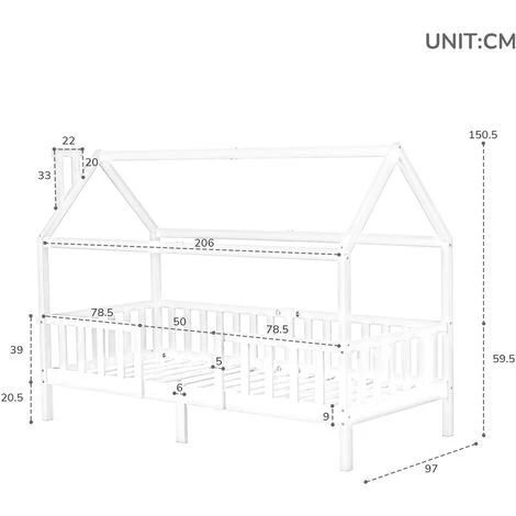 - 【Lit maison pour enfants】Avec un toit et une cl?ture, ce lit unique crée un espace amusant et adorable qui sert non seulement d’espace de couchage confortable, mais également d’endroit où vos enfants peuvent jouer et s’amuser.
