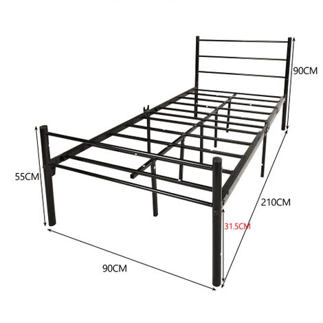 ¡¾Taille du lit simple en metal¡¿- 210 x 90 x 90 cm, convient pour un matelas de 90 x 210 cm; Hauteur de la base: 31,5 cm, voir l’image pour la taille detaillee. Le style minimaliste moderne se fondra parfaitement dans votre chambre.¡¾Materiaux de haute qualite¡¿ – Les cadres de lit sont tous en metal, a haute resilience, durables et stables. La surface noire facile d’entretien protege le lit de la rouille.¡¾Conception pratique¡¿ – Les pieds en metal sont equipes de tapis antiderapants pour augmenter la friction et proteger votre sol des rayures.¡¾economie d’espace¡¿ – L’espace sous le cadre du lit peut etre utilise pour ranger des bagages, des jouets et divers articles pour un maximum d’economies dans votre chambre.¡¾Lit en bois parfait pour une utilisation¡¿ – chambre a coucher, chambre d’amis, chambre d’enfants.¡¾Facile a assembler¡¿ – Ce cadre de lit de 90 x 210 cm, avec toutes les pieces, outils et instructions inclus. En cas de probleme avec le produit, n’hesitez pas a nous contacter, nous vous donnerons une solution satisfaisante dans les 24 heuresMatelas suggere : 90x200cm