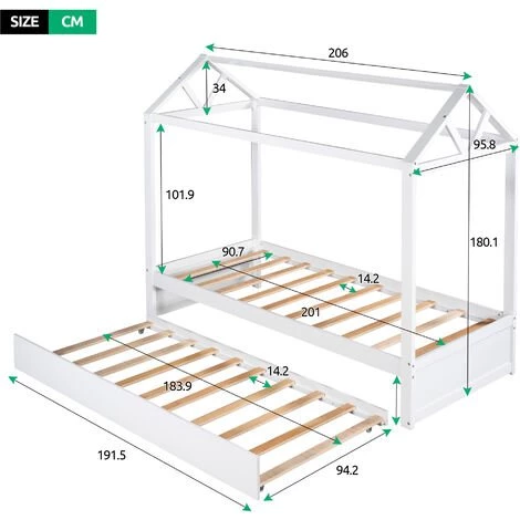 - Facile d’avoir deux lits – Le lit gigogne peut être glissé facilement et se glisse sous le lit de jour lorsqu’il n’est pas utilisé pour économiser de l’espace.