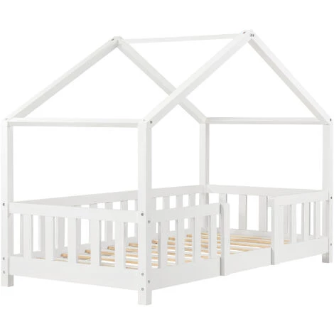 Ce lit d’enfant solide en pin sera le favori des plus petits. Grâce à son design maison, il peut être l’ornement de la chambre d’enfant. La sécurité est garanti par la grille qui encadre le lit.