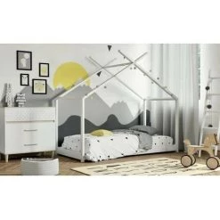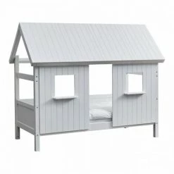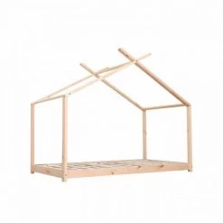 AUTRES Lit Cabane Enfant – Bois Pin Massif – Naturel – Sommier Inclus – 90 X 190 Cm – ELIAH