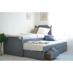 DECO IN PARIS Lit Superposé Gigogne 3 Couchages En Bois Gris LEOPAUL 90 X 190 Cm – Gris