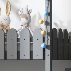 FIMEI Lit Cabane Avec 3 Marches, Avec 2 Tiroirs, Avec Clôture, Lit Superposé, Lit D’enfant, Gris