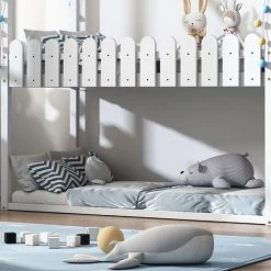 FIMEI Lit Cabane Avec 3 Escaliers, Avec 2 Tiroirs, Avec Clôture, Lit Superposé, Lit Bébé, Blanc