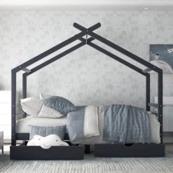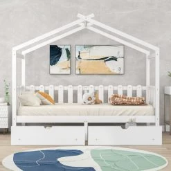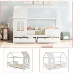 Lit Enfant Simple 90 X 200 Cm – Avec Tête De Lit Bibliothèque Et 2 Tiroirs-Blanc Bois Massif LBF