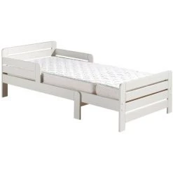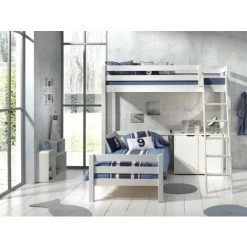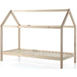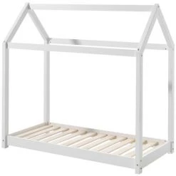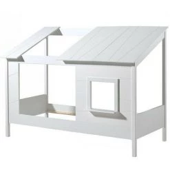 LES TENDANCES Lit Cabane Gigogne 90×200 Cm Pin Massif Fenêtre Avec Rideau Coton Blanc Parade