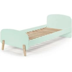 LES TENDANCES Chambre Enfant 2 Pièces Lit Et Chevet Bois Laqué Vert Et Pin Clair Kiddy 90×200 Cm
