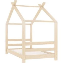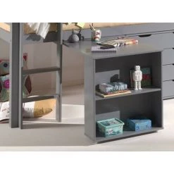 LES TENDANCES Lit Cabane 90×200 Cm Avec Rideau Et Sommier Pin Massif Gris Et Taupe Charlotte