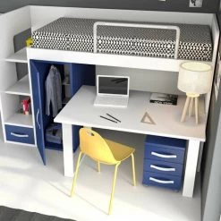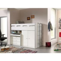 LES TENDANCES Lit Combiné 90×200 Cm Avec Sommier 3 Tiroirs 2 Portes Bois Blanc Bonny 90×200 Cm