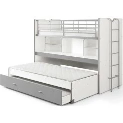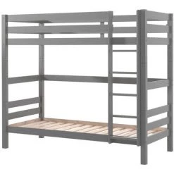 LES TENDANCES Lit Superposé Gigogne 90×200 Cm Avec Tiroir Pin Massif Gris Pino H 180 Cm