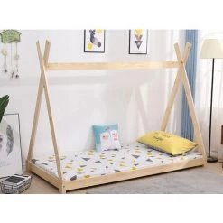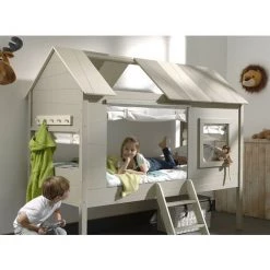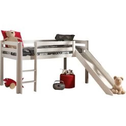 LES TENDANCES Lit Toboggan 90×200 Cm Avec Tente Tunnel Et 3 Pochettes Astra Pin Massif Clair Pino