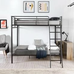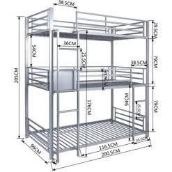 MEUBLES COSY Lit Superposé 4 Places En Métal Noir Avec échelle 140x190cm (matelas Non Inclus) – Noir