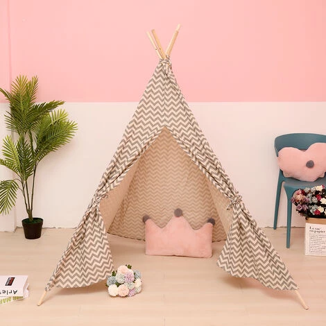 CADRE EN BOIS – Le cadre de poteau en bois robuste qui peut être branché ensemble assure un support sûr pendant que les enfants jouent. La toile de tente a des pistes cousues pour les poteaux afin que la tente puisse être installée facilement et confortablement.