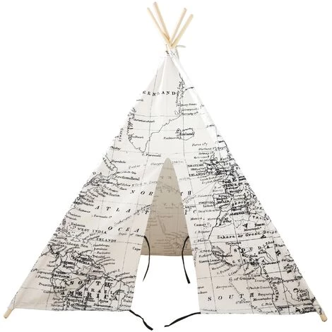 Avec ce Tipi World Map de Sunny, les enfants vivront de grandes aventures. Où êtes-vous partis ? Découvrez le monde et racontez des histoires qu’ils peuvent emporter dans leur vie quotidienne. La combinaison de noir / blanc et d’impression est idéale pour tous les types de salles ou pour les jeux en plein air. Lorsque vous avez terminé, vous pouvez facilement désassembler les poteaux pour déplacer et ranger le Tipi.