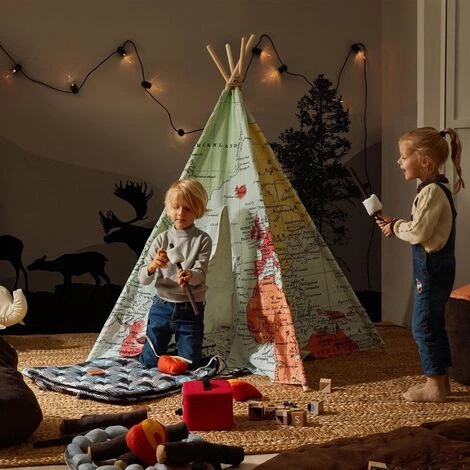 Avec cette tente tipi originale World Map de Sunny, les enfants partiront à l’aventure. Où étais-tu ? Découvrir le monde et raconter des histoires qu’ils pourront emporter avec eux dans leur vie quotidienne. Les couleurs et l’impression sont idéales pour toutes sortes de pièces ou pour jouer dehors. N’est-ce pas parfait pour vos enfants ? Lorsque vous avez fini de jouer, vous pouvez facilement replier les perches pour emporter le tipi avec vous ou le ranger.