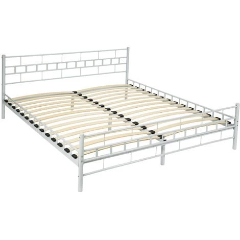 Lit Adulte Métal avec Sommier à Lattes en Bois Design 2 Personnes Morphée Blanc TECTAKE. Ce magnifique lit en métal vous offre de beaux rêves et un sommeil réparateur. Son design intemporel fait de votre lit un véritable accroche regard, il embellira sans nul doute n’importe quelle chambre à coucher. Le cadre en acier est robuste et stable, il est traité par un revêtement de poudre ce qui lui confère un effet antistatique et résistant aux chocs et aux rayures. Cadre métallique de lit avec sommier à lattes en bois de peuplier souple. Des pieds en plastique protègent le plancher de votre chambre.