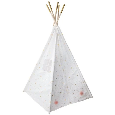Ce tipi d’enfant est composé de pieds en peuplier et d’une toile en coton & polyester.Simple à monter, votre enfant pourra vite profiter de son tipi bleu mesurant L. 140 x l. 140 x H. 160 cm (2,7 kg).Couleur: doré. Dimension produit: L. 120 x l. 120 x H. 160 cm. Poids du produit: 2,7 kg. Matière: Peuplier – Coton – polyester.