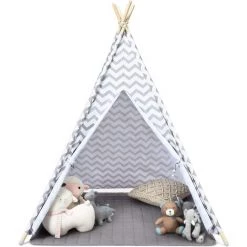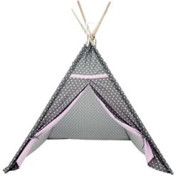 ECD GERMANY Tente De Tipi Teepee Avec Fenêtre Pour Enfants Gris Avec Des étoiles Blanches