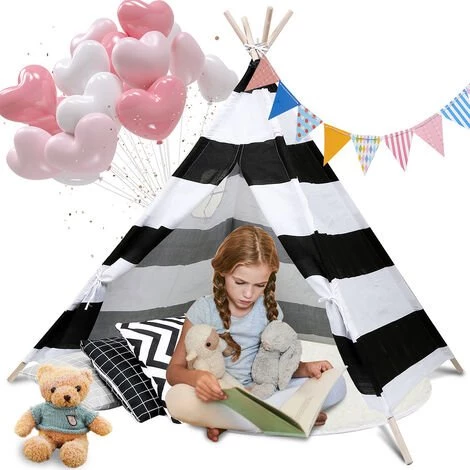 TolleTour Tipi Tente Enfants Chaîne De Fanions Tente De Jardin Tente Indienne Tente De Jeu Enfants 120x120CM – Noir