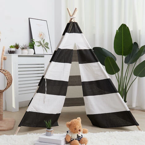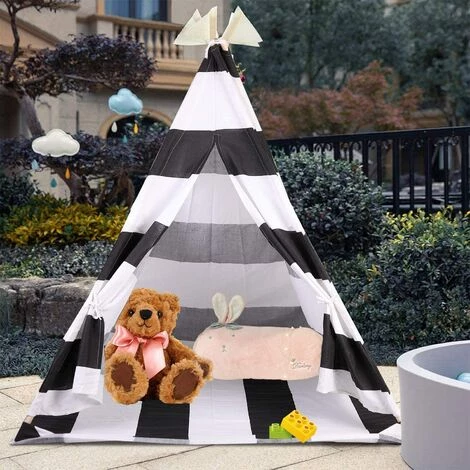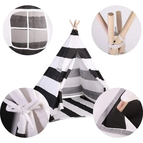 UNHO Tipi Enfant Exterieur Interieur Avec Tapis Tente Anti UV Bébé Couleur Zèbre Cabane Chambre Fille Garcon – 120x120x130 Cm