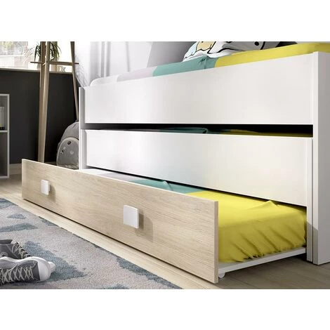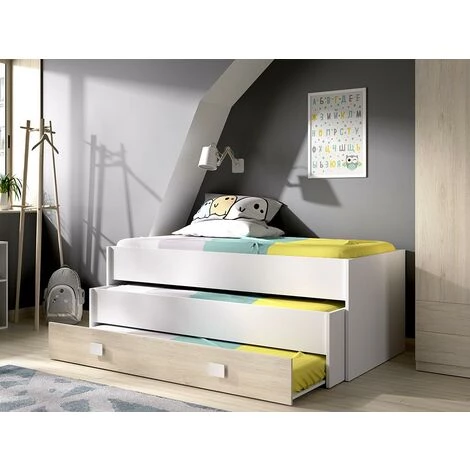 Avec ses deux lits gigognes, le lit TRIOMIA vous suprendra par son côté pratique et moderne qui permettra à votre enfant d’accueillir deux fois plus d’amis à dormir.