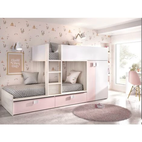 Libérer de la place dans la chambre de vos enfants grâce aux lits superposés JUANITO. Son armoire et ses 2 grands tiroirs vous permettront de ranger l’ensemble de leurs affaires.