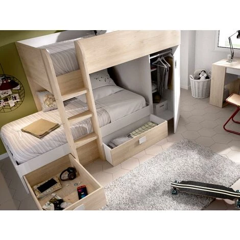 Au delà de ses couleurs modernes, le lit RICARDO vous surprendra par son design ingénieux ! Grâce à son échelle et son lit du bas réversibles, vous pourrez créer un espace nuit personnalisé pour vos enfants, adapté à vos besoins et à votre espace.