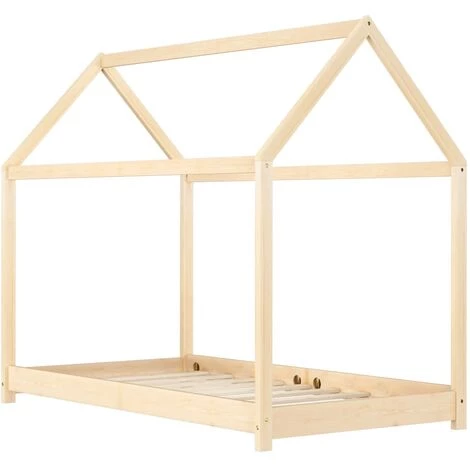 Créez le refuge ultime dans la chambre de vos enfants avec notre cadre de lit fantastique ! Le lit est intelligemment con?u avec un cadre de style maison dans un arbre où vous pouvez accrocher des rideaux de lit pour créer de l’intimité pour votre enfant. Il peut également être utilisé comme coin lecture ou maison de jeu pour votre enfant. Fabriqué en bois de pin massif, ce cadre de lit est extrêmement robuste et durable. Les lattes résistantes offrent le soutien nécessaire et sont très confortables. Ce cadre de lit convient à un matelas de 80 x 160 cm. Veuillez noter que la livraison inclut un cadre de lit seulement ; un matelas et les rideaux ne sont pas inclus. Le lit est facile à assembler. Vous pouvez chercher le matelas correspondant dans notre boutique.